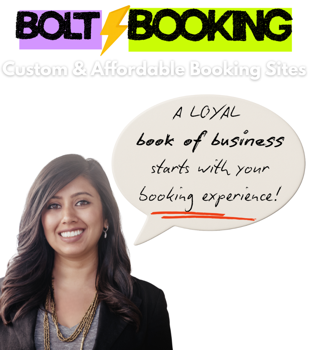 Hi I'm Neeti, Founder/CEO of Bolt Booking. I personally build/manage every site and who my clients count on for support.